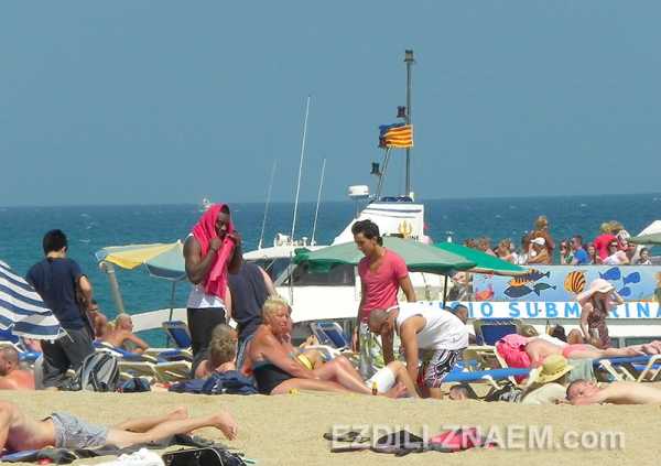 На фото: пляжный отдых в испанском Ллорет де МарПляжи в Ллорет де Мар песчанные, но глубина начинается очень резко, поэтому отдыхать тут с маленькими детьми не самая лучшая затея. На пляже предлагаются лежаки и зонтики по 5 евро. Везде оборудованы душевые стойки. В бухте Ллорет де Мар всегда очень оживленно, – постоянно снуют лодки, катера и яхты. В общем-то типовой пляж Коста Брава.