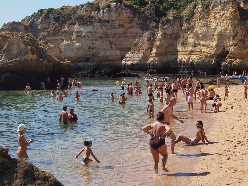 Пляж возле парка Альбуфера..Люди приезжают из разных уголков мира, чтобы искупаться в ласковом море.