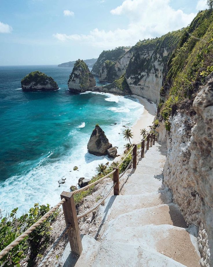 Говоря о лестницах, Даймонд-Бич — еще одно место, которое обязательно нужно посетить на Нуса-Пенида. Здесь нужно спускаться по лестнице, спускающейся со скалы.