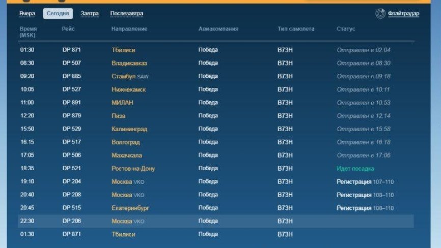 | По расписанию | Дата | Статус | Отправление | Авиакомпания | Рейс |