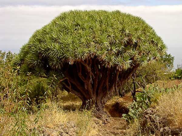5. В La Tosca (Barlovento) и в Buracas (Garafía) можно полюбоваться на растущие здесь драконовые деревья. Стволы старейших драконовых деревьев выглядят очень экзотично: они непропорционально толстые, увенчанные сверху густой щеткой острых листьев. Ствол взрослой драцены причудливо ветвится, образуя множество боковых побегов. Некоторые деревья выпускают укрывающие ствол воздушные корни. А иногда в стволе старого драконового дерева образуется дупло — настолько большое, что может вместить человека. Такие деревья жители Канарских островов считают священными, возле них проводят ритуалы.