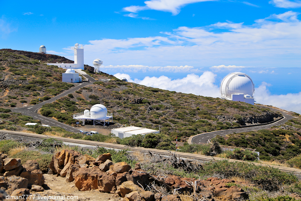 19. В 1985 году несколько европейских стран участвовали в проекте, который является одним из самых важных в своем роде в мире. Решающим для местоположения проекта были климатические условия на самой высокой возвышенности Ла Пальма — на горе зарегистрировано очень много безоблачных ночей. Облака часто висят на высоте 1000 метров над уровнем моря, но облака заканчиваются на последних 2000 метрах и воздух на Роке де лос Мучачос особенно чист.