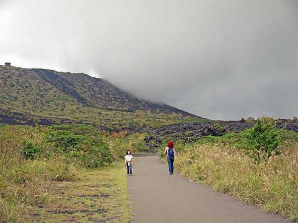 Дальше тропинка до максимума, с которого можно смотреть на кратер. Максимум в виде веревочного ограждения — я все хотел преодолеть, но появляющееся в Японии желание «соответствовать» меня остановило.