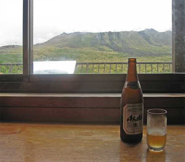На старте есть мелкое кафе — можно с видом на вулкан Михара восполнять потерю жидкости.