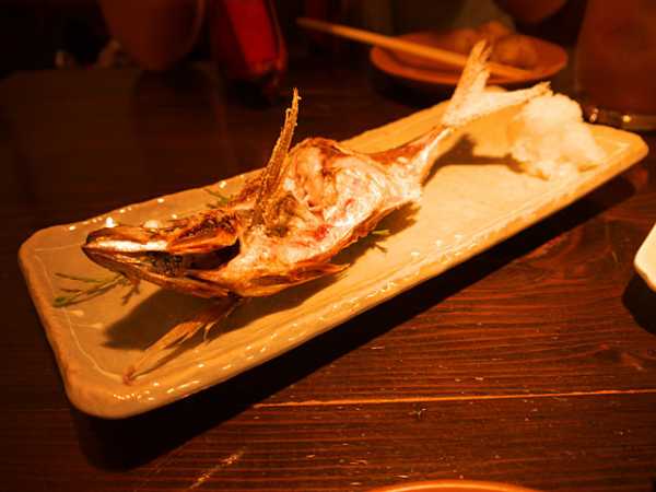 Да, таки устали, палец у меня поломался снова как то привычно и удачно понравилась едальня в переходе на Синдзюку. С уклоном в сторону рыбы + приятный полумрак, успокаивающий накопившиеся за день эмоции. В ней откушивали после работы менеджеры какого звена повыше и шумно веселилась какая то компания. Со входя заказали сауэ/шочу и стали выбирать из меню чего есть. Заказали практически все рыбное, за исключением лосося, который как бы надоел и дома, хот он и другово качетва, гораздо интереснее пробовать какие то другие вещи. Тем более что за стойкой на палочках и на открытом огнем вылили каких то рыб. Выглядит прикольно для нас дикарей.