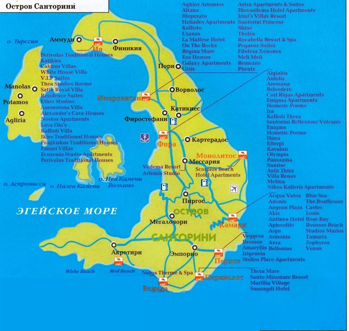 Багаж вы сможете оставить в самых разных туристических агентствах (ищите указатели). На набережной работает превосходное интернет-кафе «Memphis», где также запишут ваши цифровые фотоснимки на компакт-диск. Двигаясь от ветряной мельницы в сторону от моря, вы, миновав таксопарк, выйдете к площади Мавроенус, вокруг которой дома расположены лабиринтом, чтобы сбить с дороги пиратов и ослабить ветер. Рядом – телефонный переговорный пункт, участок туристической полиции, банки и офис авиалинии «Olympic Airways».