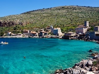 Средний «палец» внизу Пелопоннеса — одно из самых диких мест Средиземноморья. Смелые горы падают в море, и хотя летом этот живописный регион может казаться бесплодным, весной он полон полевых цветов.