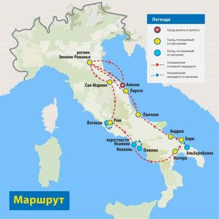 Москву и Ватикан разделяют примерно 3000 километров и на весь путь на машине уйдет по меньшей мере 35 часов. Путь будет проходить по дорогам Белоруссии, и Италии.