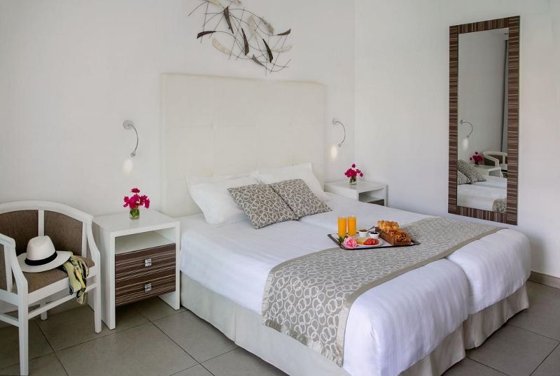 Уютная курортная локация в окружении оливковых и цитрусовых садов с лагунообразным бассейном и террасой на крыше – отличное место для проведения выходных или отпуска на побережье. До пляжа Нисси 10 минут ходьбы. Пляж песчаный с пологим заходом в море и лежаками. Территория большая с теннисным кортом, местами для отдыха и развлечений. Номера просторные, можно разместиться вдвоем или всей семьей.