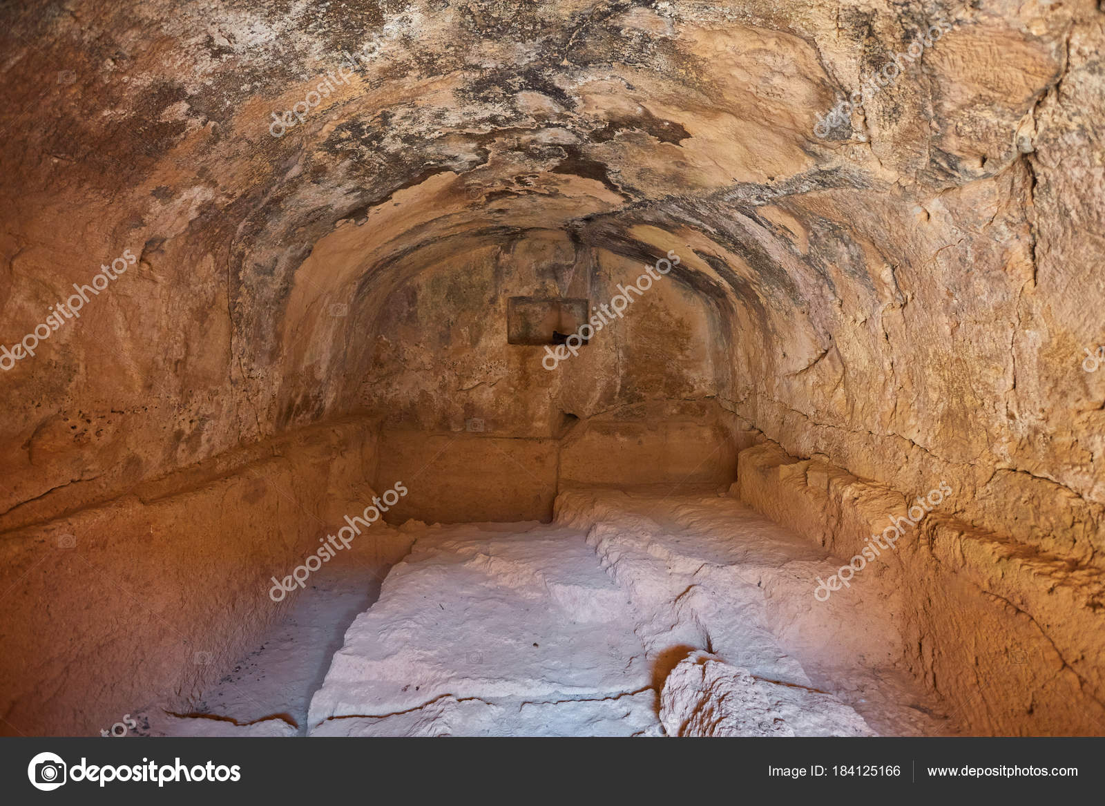 Напротив входа (южнее) в эллинистический и римский периоды использовалась погребальная камера. Обратите внимание на камень, местами полностью съеденный эрозией и ветром.