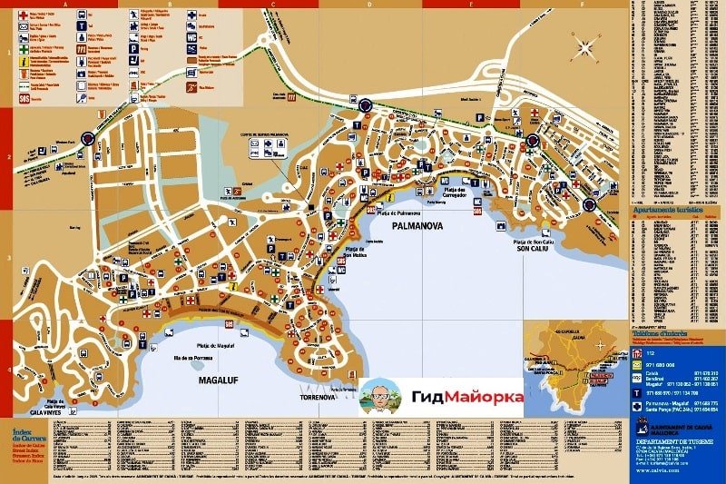 Алькудия — Кала д’Ор — Кала Фигера — Кала Минор — Кан Пастилья — Магалуф — Пальма — Пальма Нова — Порт Де Польенса — С’Ареналь — Санта Понса