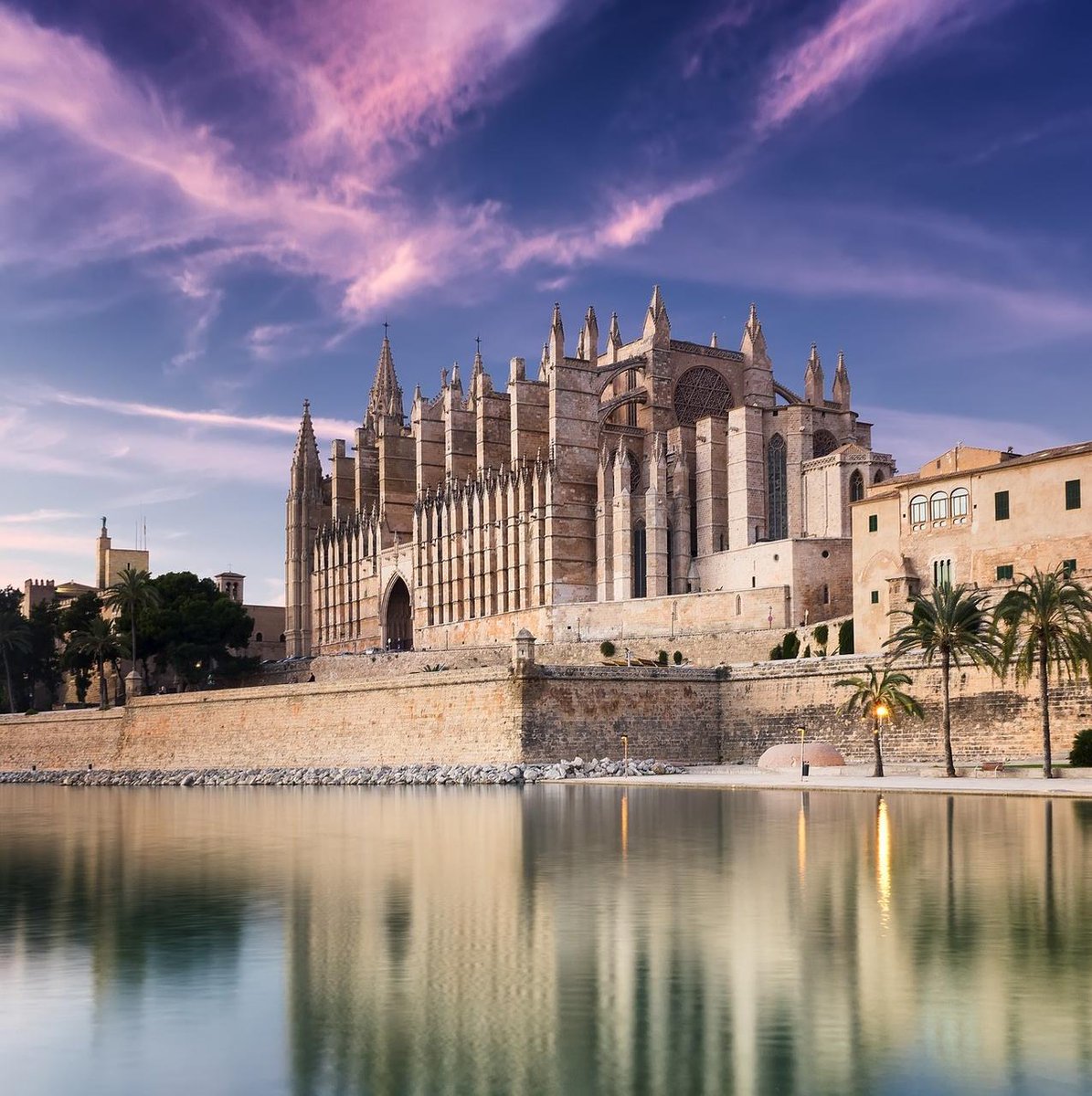 Majestätisch thront die gotische Kathedrale über der Bucht von Palma. Aufgrund ihrer beeindruckenden Architektur und imposanten Größe ist sie die meist besuchteste Sehenswürdigkeit Mallorcas.Schon beim Landeanflug auf die Insel ist sie weithin sichtbar und beherrscht das Stadtbild.