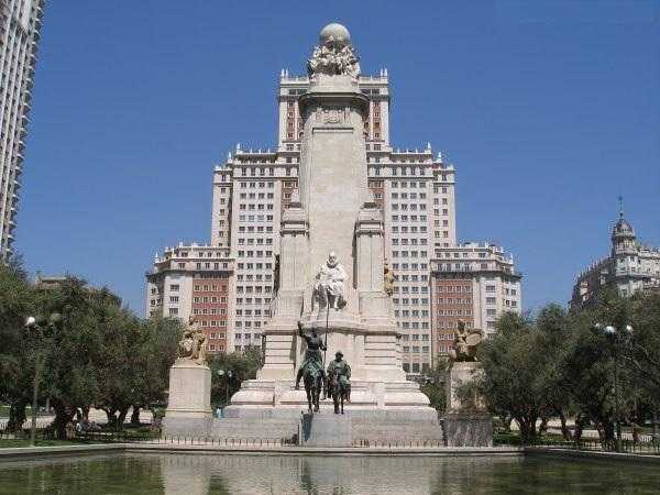 Памятник, посвященный Дон Кихоту и Сервантесу, установлен в Мадриде на площади Испании, неподалеку от Королевского дворца. История его появления связана с 300-летней годовщиной со дня смерти великого автора.В 1915 году правительство Испании объявило об условиях конкурса на создание национального памятника, который смог бы украсить собой дворцовую площадь. Победителем стал проект, представленный скульптором Кулло-Валера и архитектором Сапатерой. Открыли памятник Сервантесу в Мадриде в октябре 1929 года, несмотря на то что на тот момент необходимые работы по его созданию еще не были закончены.