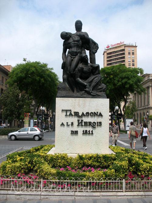 Продолжаем нашу прогулку по Новой Рамбле. На следующем перекрестке (Carrer d’En Canyelles/Rambla Nova) нас ждет памятник героям 1811 года (Monument als herois de 1811). Автором этого монумента является каталонский скульптор Джулио (Хулио) Антонио (Julio Antonio) (1889-1919). В народе этот памятник, выполненный с явными элементами стиля модерн, известен под названием «Обнаженные» (Els despullats) (из-за того что скульптор изобразил своих персонажей без одежды, композиция вызвала в свое время ожесточенную полемику в таррагонском обществе).