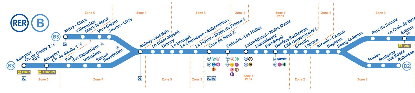 Проезд стоит 11.4 евро с человека. На территории аэропорта находятся 2 остановки RER B. Одна возле терминалов 2C, 2D, 2E и 2F: