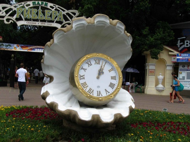 Несомненно, «жемчужные часы», который установлен прямо у входа является достопримечательностью парка. Это совершенно уникальная скульптура, где в центре ракушки вместо жемчужины установлены круглые часы.