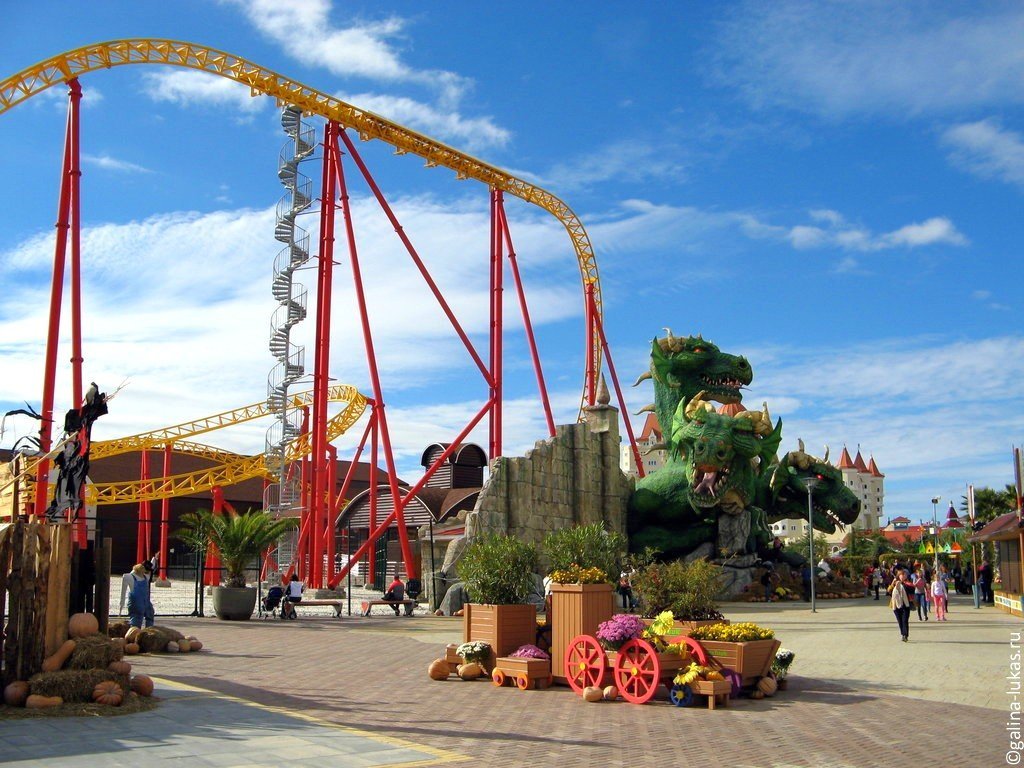 Именно здесь расположились (причем — по соседству, через дорогу!) теперь уже знаменитый «Олимпийский парк», а также наш российский Диснейленд — парк развлечений «Сочи-парк».