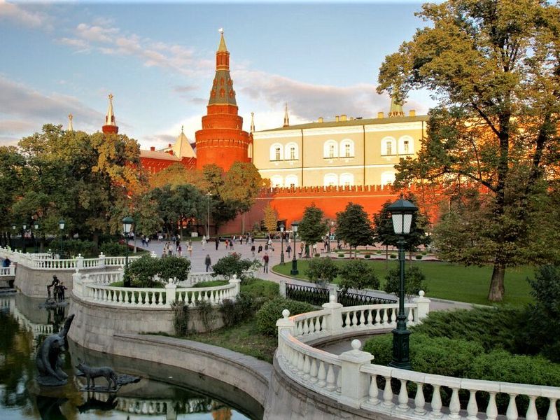 Восточная часть Кремля граничит с Красной площадью, но вход в Кремль не через Красную площадь, а через западную часть, где Александровы сады, расположен один из первых общественных парков Москвы. Там вы найдете Могила Неизвестного солдата , памятник, посвященный советским воинам, павшим в Великой Отечественной войне, в центре которого горит вечный огонь , охраняемый Почетным караулом Президентского полка.