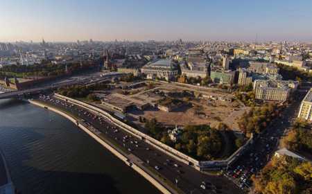 За свою многовековую историю древнейший район Москвы – Зарядье – не раз кардинально менял свой облик: тут проходила первая улица московского посада, сменяли друг друга Английское посольство, царская резиденция, еврейский квартал и даже трущобы. В начале ХХ века в Зарядье начали строить самую большую московскую высотку, но проект заморозили, а на фундаменте возвели самую большую в мире гостиницу «Россия».