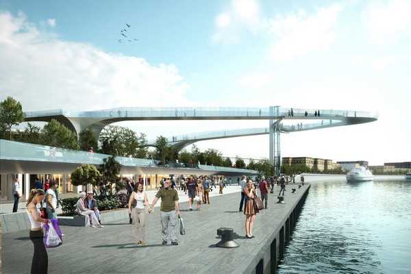 Прямо из ресторана гости смогут выйти на крышу, с которой по специальной стеклянной лестнице легко добраться до главных прогулочных дорожек парка.