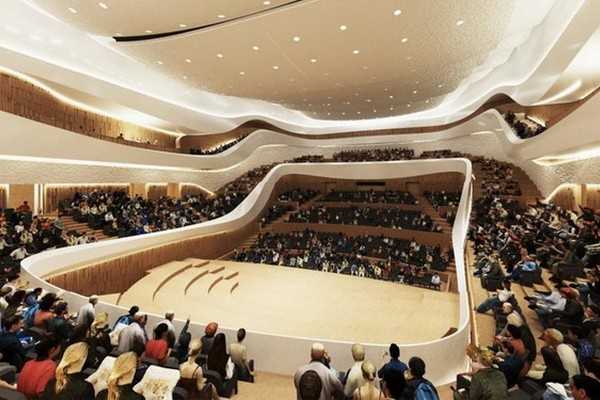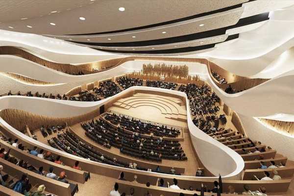Концертный зал в «Зарядье» накрыт огромной стеклянной крышей-куполом. Сцена зала может трансформироваться в соответствии с особенностями проводимого мероприятия.