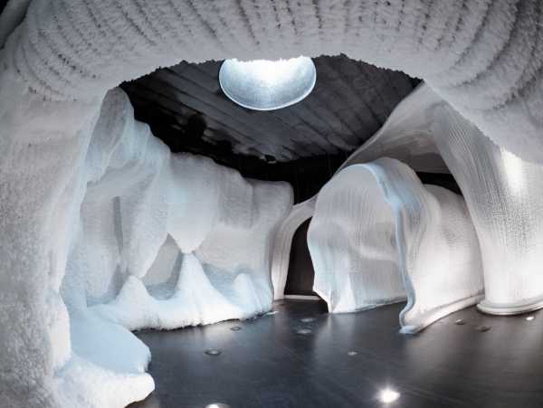 На входе в павильон гостей встречает искусственный айсберг массой около 70 тонн. В «Ледяной пещере» всегда холодно, поэтому посетителям аттракциона следует брать с собойтеплую одежду.