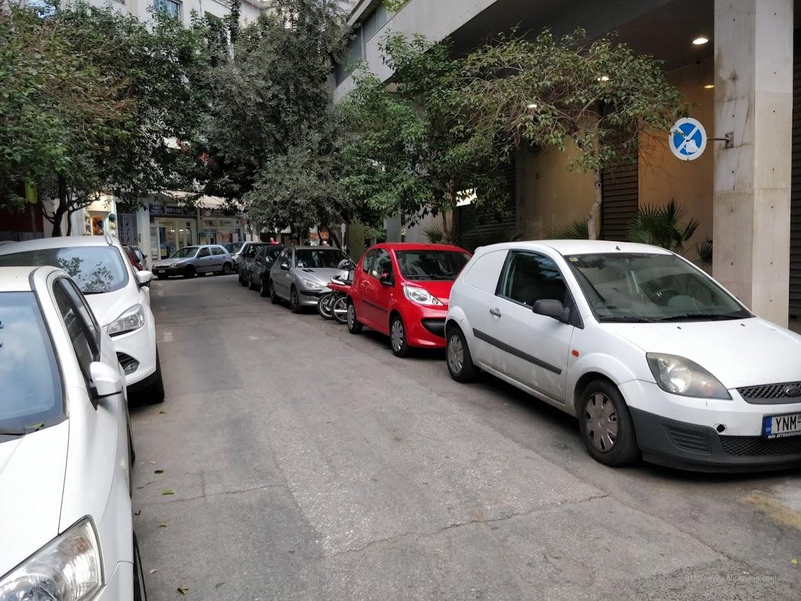 Непонятный памятник, пытался понять, что представляют из себя светлые треугольники, но так и не догадался, а скорее всего ничего, ведь это современное арт-искусство. Названия улочек выложены из фактурной плитки, смотрится очень круто!Тут, как и на Гибралтаре можно найти много набережных с орудиями. Мы быстро дошли до старого города, а тут, как и в любом городе Европы есть на что посмотреть. Узкие улочки с мощёными тротуарами, что может быть красивее?Подъезды почти всегда открыты, что редкость, даже для Европы. Стиль необычный, особенно круто смотрится синяя плитка внутри.Сам старый город поделён на 4 больших квартала, один из низ называется квартал виноградной лозы – потому-что, построен на месте виноградников. Переплетаясь, эти улочки иногда образуют площади внутри себя. На этой по центру растёт огромное дерево, с мощными корнями. Тут мы и остановились попить кофе.После мы пошли забирать нашу машину, чтобы переехать поближе к главной достопримечательности, к Кафедральному собору. Одна минута в центре стоит 0,035 евроВ этот раз припарковались на улице, и заметили машину, которая судя по чистоте стёкол и количеству тикетов стоит здесь уже давно.
