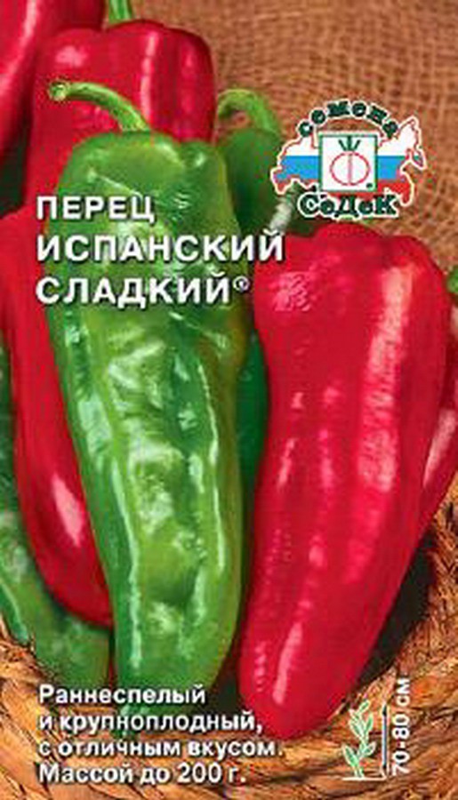 Перец Испанский сладкий среднерослый, может достигать в высоту максимум до 80 см. Листовые пластины достаточно крупные, морщинистые, насыщенного зеленого цвета. Плоды узкие, конусовидные, длиной до 15-20 см, сладкие, сочные. Цвет меняется с зеленого, во время технической зрелости, до красного.