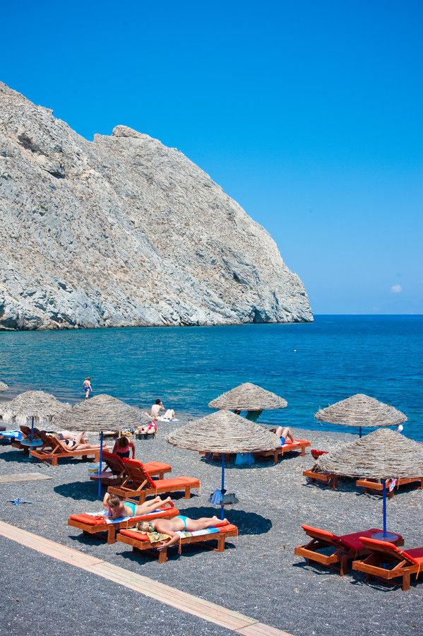 На острове Санторини есть курорты, на которых как раз можно наслаждаться пляжным отдыхом, загорать и купаться. Огромный плюс этих мест в том, что астрономических цен, как в Ие и Фире, в них нет. Все достаточно доступно и очень по-гречески:) Ну а так как остров маленький, выбраться на прогулку в сказочные городки вам будет очень просто, до полуночи ходят автобусы, или же можно арендовать машину, квадроцикл или моторино.