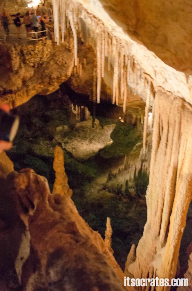 Маршрут длинной 1200 метров начинается от пещеры Людвига Сальватора. Мы шли друг за другом, фотографируя все на своем пути. По пути нам встречались подземные озера, причудливые композиции из сталактитов и сталагмитов, напоминающие по форме зубы дракона, колонны, замок в руинах, драпировку.