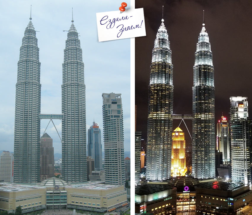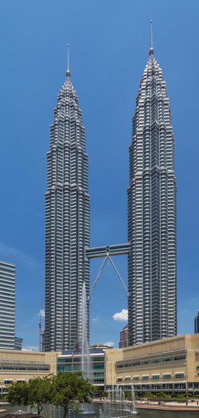 Башни Петронас (также известные как башни-близнецы Петронас) — это небоскребы и башни-близнецы в Куала-Лумпуре, Малайзия. С 1998 по 2004 год они были самыми высокими зданиями в мире, пока их не превзошел Тайбэй 101, но они остаются самыми высокими зданиями-близнецами в мире (по состоянию на 2010 год). Здание является достопримечательностью Куала-Лумпура с близлежащей башней Куала-Лумпур. Башни Петронас, спроектированные аргентинским архитектором Сезаром Пелли, были построены в 1998 году после семи лет строительства.Поначалу не планировалось, что башни Петронас станут самым высоким зданием в мире, пока об этом внезапно не подумал доктор Махатхир, 4-й премьер-министр; даже во время строительства уже ведется строительство. Были произведены математические пересчеты и, наконец, план по увеличению высоты вершин выполнен.