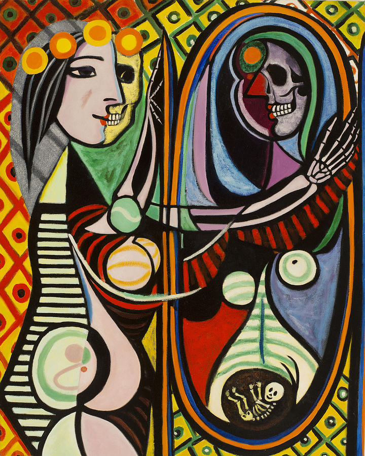 На написанной в марте 1932 года картине мы видим образ французской любовницы Пикассо, Марии Терезы Вальтер. Стиль этой картины называется кубизм. Идея кубизма — взять объект, разбить его на более простые части, а затем, исходя из нескольких точек зрения, воссоздать те самые части на холсте. В «Девушке перед зеркалом» можно рассмотреть образ тщеславия. Картина на первый взгляд кажется довольно простой, но если присмотреться, то можно найти различные глубокие символы на всех частях картины.
