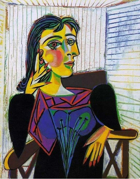 Как и «Герника», это произведение искусства тоже создано в 1937 году. Музой Пикассо была Мария Тереза Вальтер, и он создал множество ее спокойных образов. Многие считают, что эта картина напоминает королеву из колоды игральных карт – такую образность часто проектируют с помощью полос. Работа также выполнена в стиле кубизм наряду с поляризацией красного и зеленого цветов.