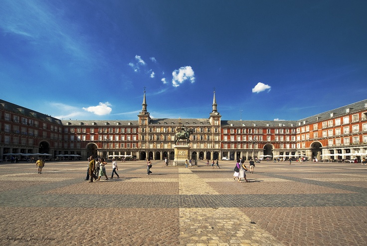 Plaza Mayor , большая площадь с аркадами в центре Мадрида, очень популярна как среди туристов, так и среди местных жителей. Симметричный прямоугольный квадрат имеет единую архитектуру.