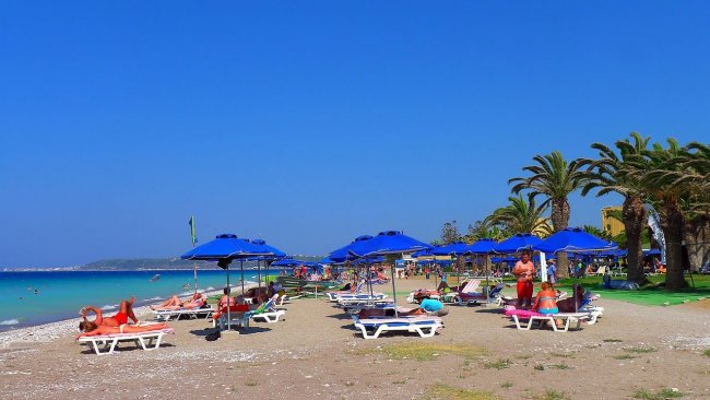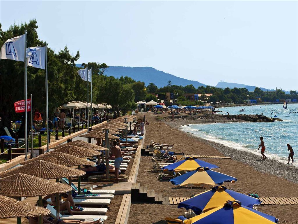 Еще одна особенности курорта – местные пляжи. Длина береговой линии всего 5 км. Покрытие галечное, реже встречаются песчаные пляжи в Иксии. По отзывам туристов прогретая пляжная галька способна заменить традиционные СПА-процедуры. Однако долго на ней не полежишь, будет неудобно. Выход – аренда шезлонгов лежаков, зонтиков.