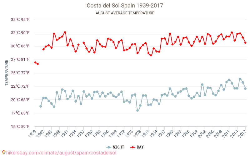 Как и в большей части Испании, в апреле температура начинает неуклонно повышаться, достигая иногда 20 ºC и достигая пика в среднем 21.8 ºC. Однако легкий ветерок или бриз, дующий в течение дня, сделают день более прохладным.