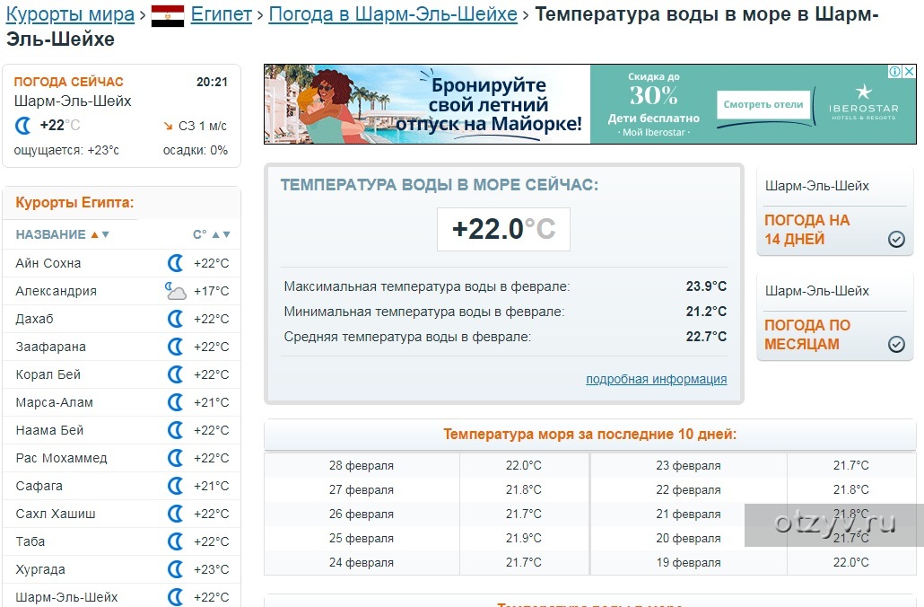 Текущая температура морской воды: