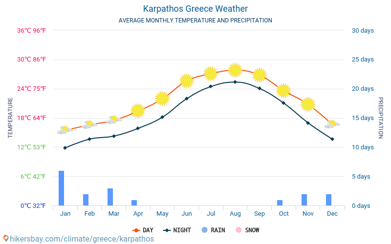 Средний максимум: 19C / 66F Средний минимум: 11C / 52F Дней с выпадением дождя: 6