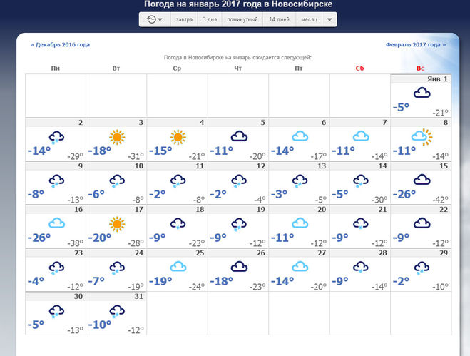 | Температура днём, °C | -2 | -2 | -2 | -2 | -3 |