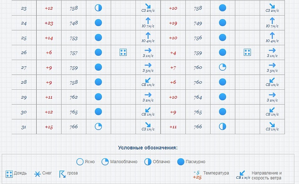 | Ветер, м/с | 3 | 3 | 4 | 3 | 3 |