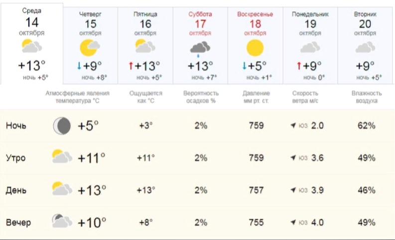 - Погода в октябре