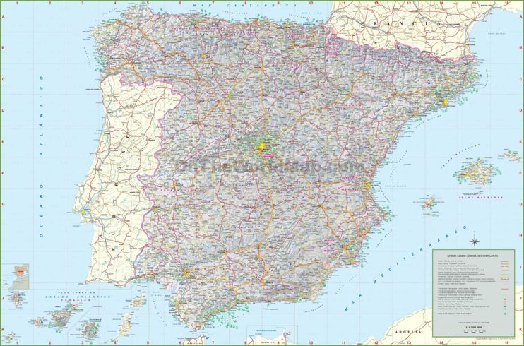 Эта подробная карта Испании позволит вам сориентироваться в Испании в Европе. Подробную карту Испании можно загрузить в формате PDF, распечатать и бесплатно.