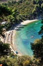 Чтобы добраться до главного пляжа, нужно спуститься по тропинке, спускающейся с горы (и, следовательно, по возвращении нужно подняться по ней), но это, пожалуй, единственное неудобство. Второй по важности пляж — Лиози — находится немного дальше. В обоих есть мелкий песок.