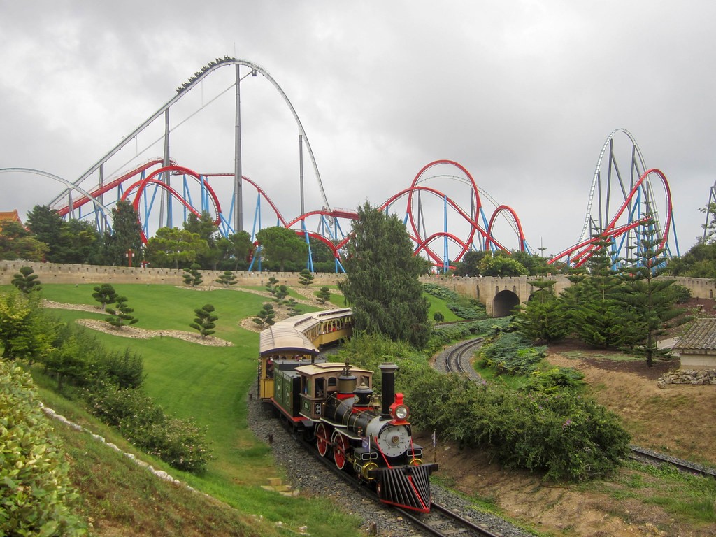 Тем кто пережил полет на Разъяренном Баке, где кстати всего за 13 Евро, можно купить видео со своими развевающимися от ветра щеками, и хочет немного отдохнуть от неожиданного экстрима, неподалеку предлагается прокатиться на поезде с настоящим старинным паровозом, отходящем от железнодорожной станции Estacio del Nord и идущем в объезд всего парка, до Penitence Station на Диком Западе.
