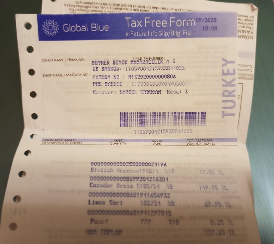 И кассовый чек и квитанция Tax Free Form очень важны, потому сохраняйте их до момента возвращения на родину.
