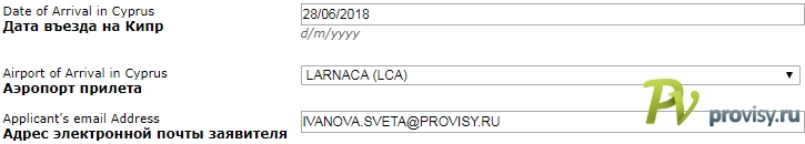- Date of arrival in Cyprus (Дата прибытия на Кипр) — указываем дату прибытия