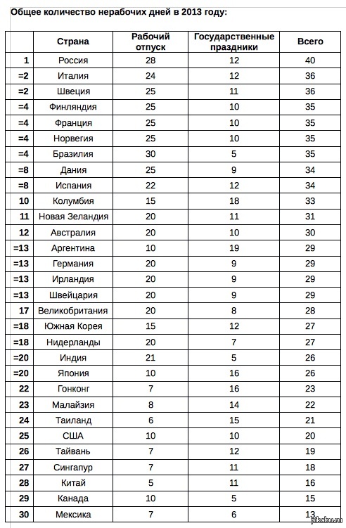 Другими словами, в Испании – 225 рабочих дней в году, а в Великобритании – 237.
