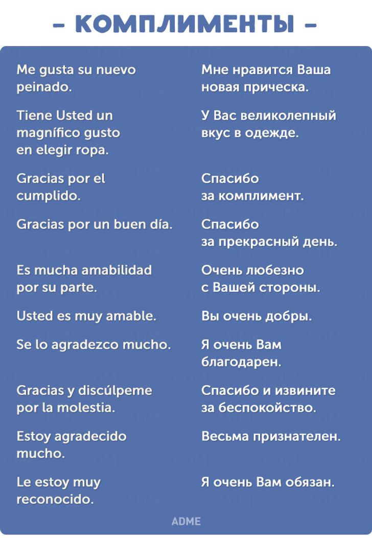 21. Популярные разговорные фразы и выражения на испанском языке с переводом.