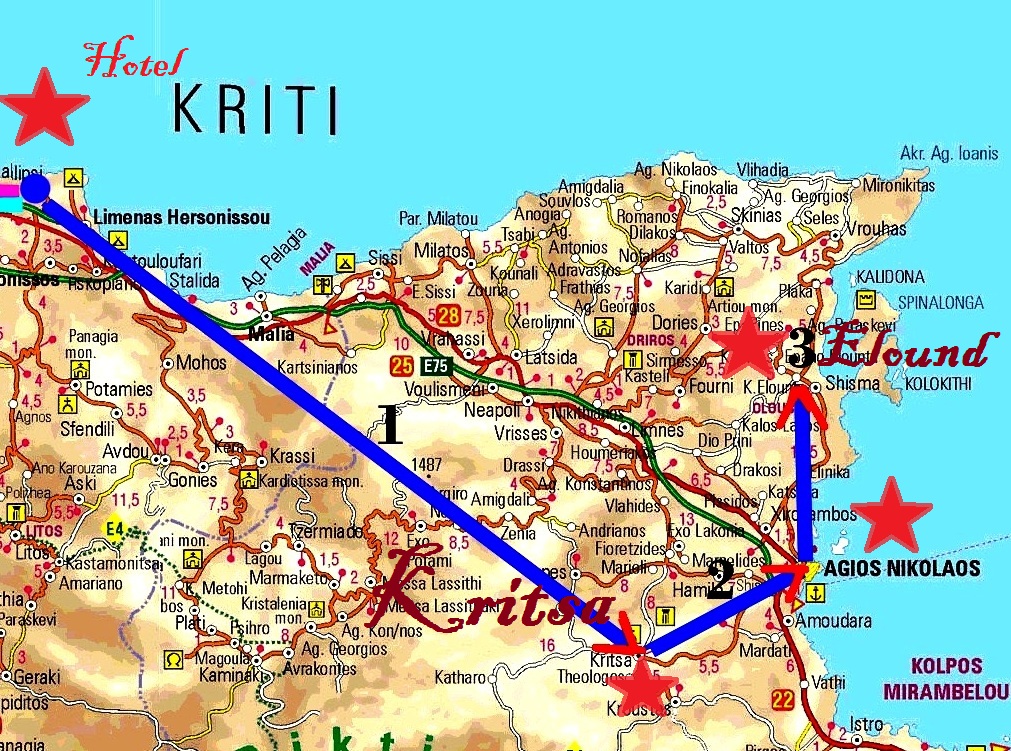 Какое расстояние между Айосом-Николаосом и Ираклионом?