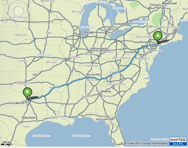 Расстояние от Нью-Йорка до Бостона 340 километров